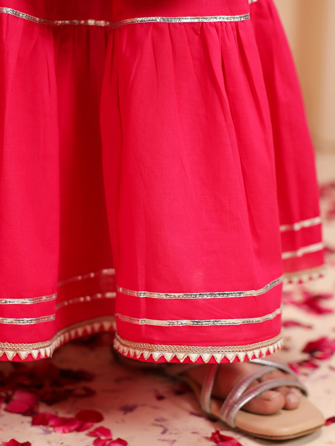 Girls Bandhani Printed Regular Gotta Patti Pure Cotton Kurti with Sharara & With Dupatta