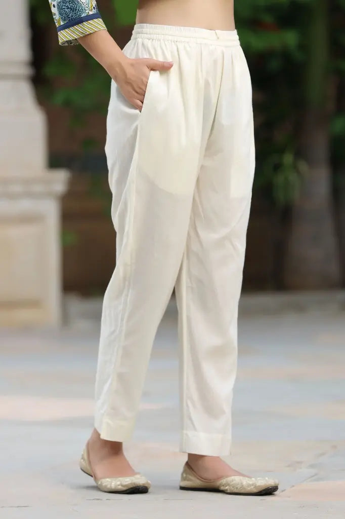 Coral printed Kurta with Trousers with dupatta, floral printed a-line kurta, v-neck three quarter regular sleeves kurta with 2 pockets and thread work detail, calf length with flared hem, solid trousers with elasticated waistband