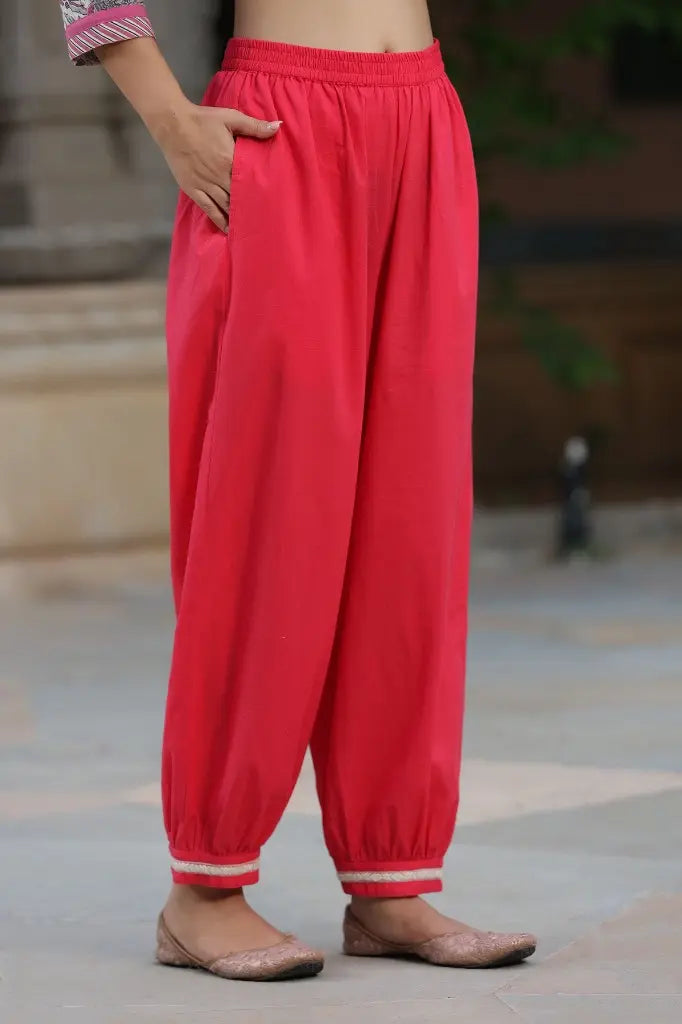 Women Cream and Pink Embroidered Pure Cotton Straight Kurta With Salwar