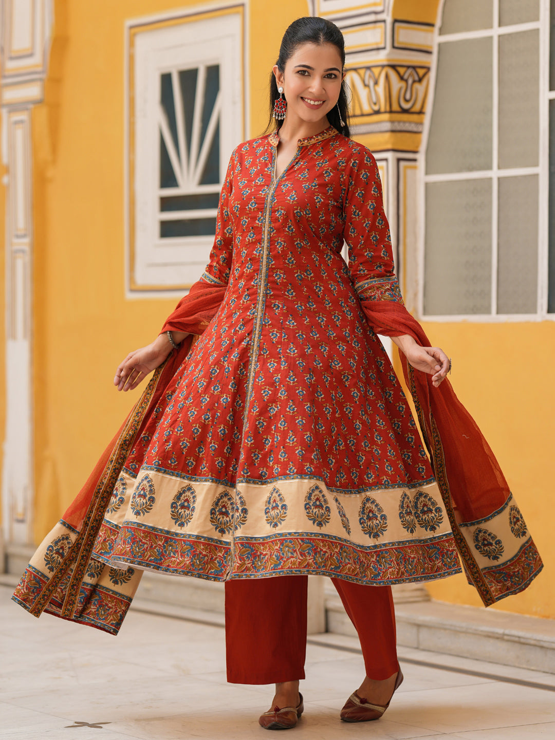Women Ethnic Motifs Printed Cotton Anarkali Kurta with Trousers & Dupatta