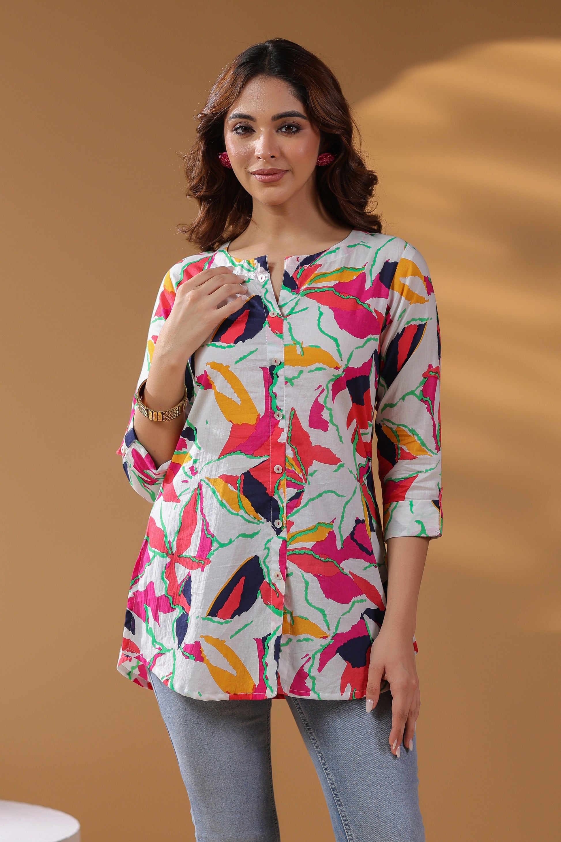 Women Floral Printed Three-Quarter Sleeves Cotton Top