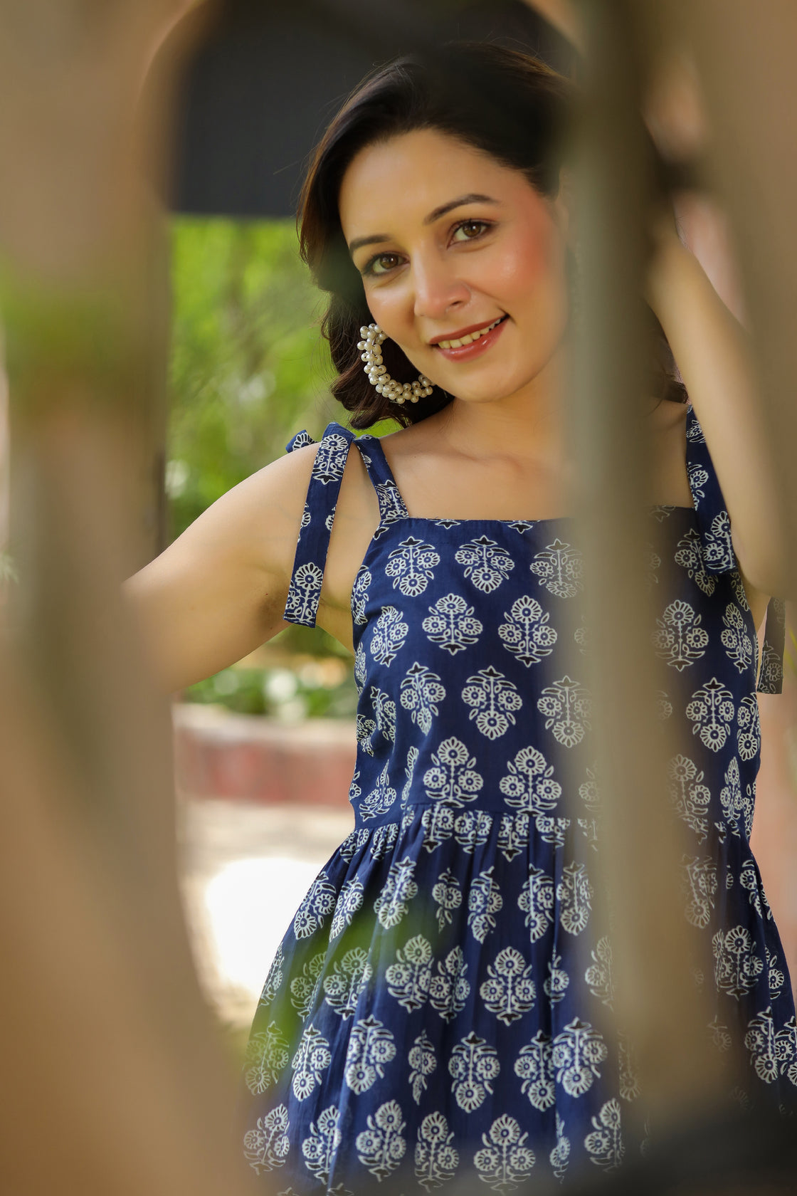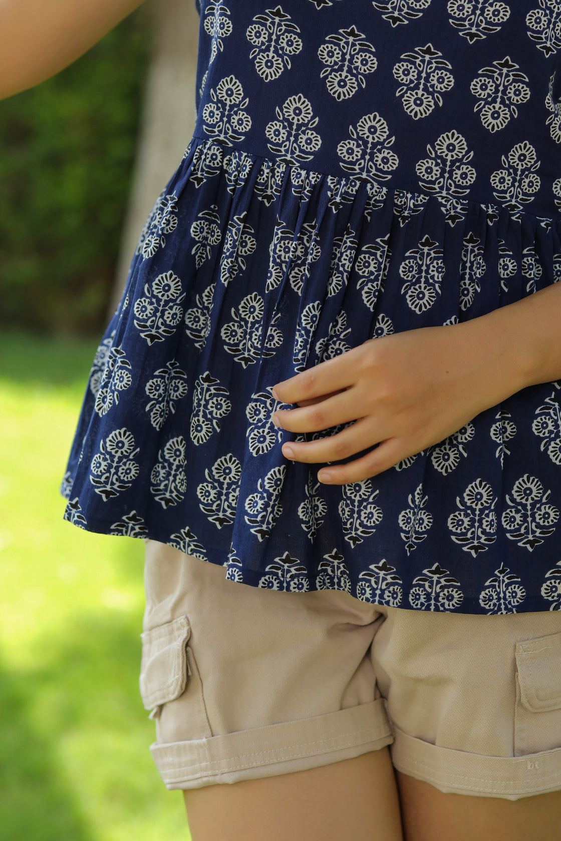 Step into effortless style with this blue ethnic motifs printed top, perfect for sunny days and festive vibes. Designed with a sleeveless silhouette and adjustable tie-up straps, it offers a playful yet comfortable fit. The peplum design adds a flattering flare, making it a stylish choice for both casual and ethnic-inspired looks. Pair it with jeans, skirts, or palazzos for a chic fusion ensemble.