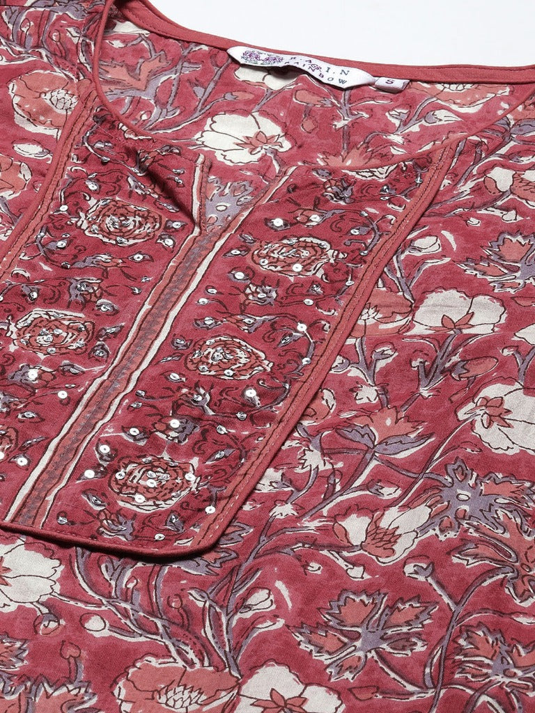Women Rose Floral Printed Pure Cotton Straight Kurti